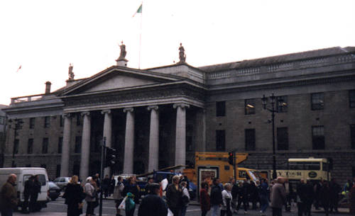 ![]() dublin post office, one of the few surviving buildings on o'connell street from the 1916 rising. if you get close enough, bullet holes are still found in the pillars. |